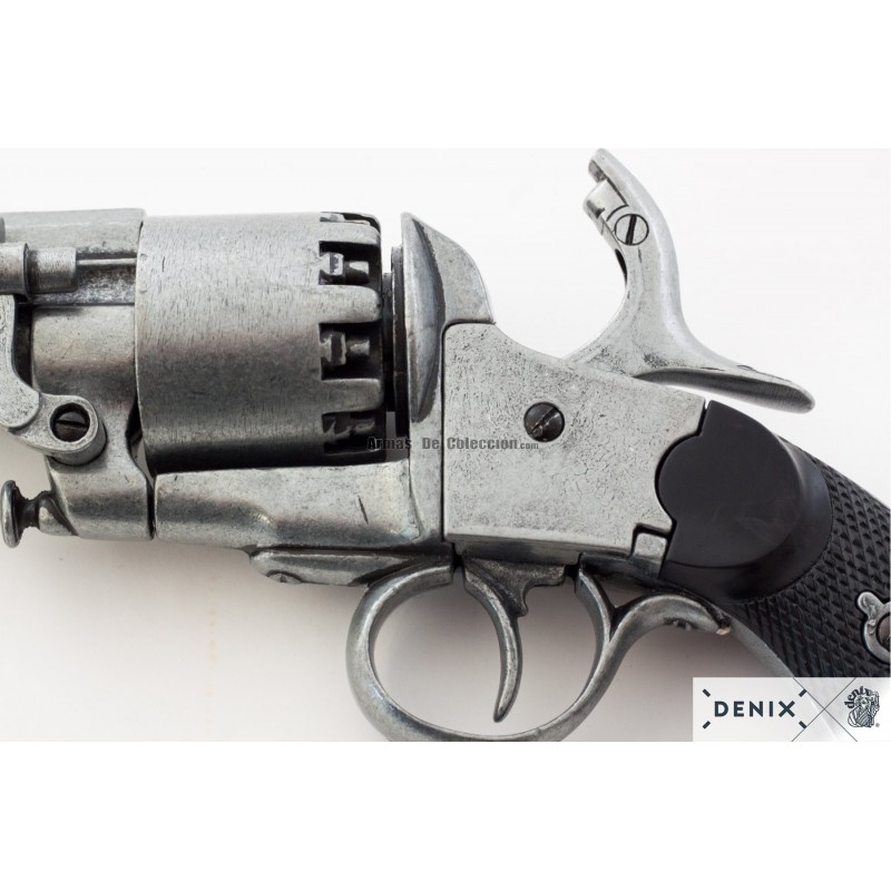 Discover the LeMat Confederate Revolver replica, a Civil War (USA 1855) icon, now available as Denix reference 1070. Originally made between 1856 and 1865, this revolver was the Confederate cavalry's favorite, known for its unique design and functionality. The first models, crafted by John Krider in Philadelphia and later in France, featured distinctive characteristics like the octagonal barrel and walnut grips, and were made in Cavalry, Army, and Navy versions. Denix's replica, true to the original, measures 37 cm in length and weighs 1,475 g. Mainly composed of metal and black ABS, this piece captures the historical essence and offers significant value to collectors and American military history enthusiasts