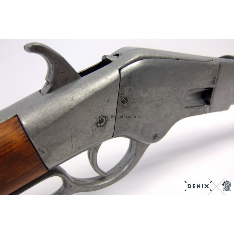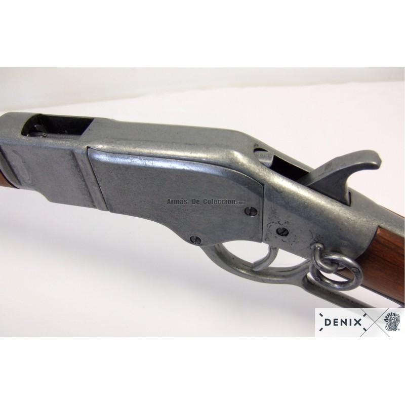 Discover the Denix replica of the Carbine Mod.66, USA 1866, reference 1140/G. This detailed replica, measuring 100 cm and weighing 3,000 g, combines high-quality materials such as wood and metal. It emulates the iconic 19th-century "Yellow Boy" with simulated loading and firing mechanisms, reflecting Nelson King's innovative horizontal movement lock. Used by cowboys, lawmen, and settlers, this lever-action repeating carbine was a milestone in the Indian Wars and American expansion. Ideal for collectors and western enthusiasts