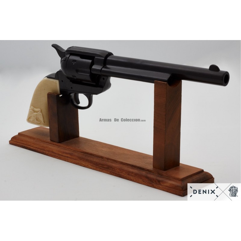 Discover the Denix 1109/N Revolver Replica, a true representation of the legendary Peacemaker Cal.45, a symbol of the Old West and the American Civil War era. Meticulously crafted with metal and plastic grip mimicking ivory, this 35 cm and 1,020 g collectible piece evokes the history and design of the original created by Samuel Colt in 1873. Used by both the US army and civilians, the Peacemaker stood out for its ammunition compatible with the Winchester M1873 rifle. Admired in classic cinema and carried by historical figures like John Wayne, Gary Cooper, Roosevelt, and George S. Patton, this replica captures the essence of an era defined by its robustness and cultural legacy.