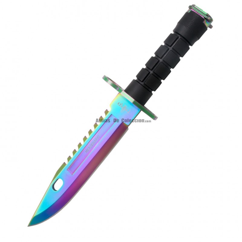 Cuchillo táctico Third H0814W con hoja de acero 420 de 19.5 cm en titanio rainbow, mango de ABS, funda