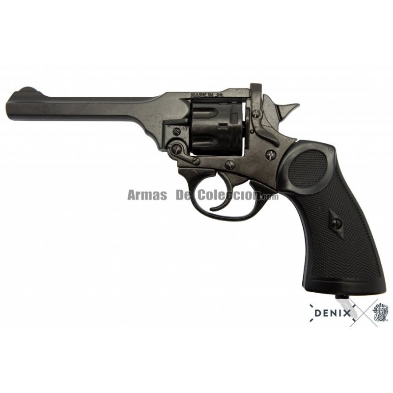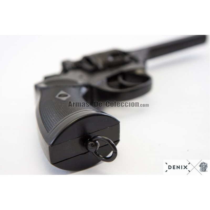 Descubre la réplica del icónico Revólver Mk 4 de Gran Bretaña de 1923, fabricado por Denix (Ref. 1119). Esta pieza de coleccionista mide 28.5 cm y pesa 700 g, fiel al original utilizado en ambas Guerras Mundiales. Fabricado con metal y ABS negro, este revólver no solo representa un objeto de colección sino también un pedazo de historia. Diseñado originalmente por Webley, fue la pistola de servicio estándar de las Fuerzas Armadas del Reino Unido y del Imperio Británico desde 1887 hasta 1963. Conocido por su robustez y fiabilidad, jugó un papel crucial en la Guerra de los Boers, la Primera y la Segunda Guerra Mundial. Esta réplica ofrece una oportunidad única para poseer un trozo de historia militar, perfectamente recreado en detalle y calidad por Denix, un líder en réplicas históricas de armas.
