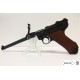 Descubre la réplica histórica de la Pistola Parabellum Luger P08 de 8" con cachas de madera de Denix, referencia DM1145. Esta fiel reproducción a escala 1:1 refleja con precisión el diseño icónico y la historia de la Luger P08, una de las primeras pistolas semiautomáticas. Diseñada en 1898 por Georg Luger y producida por Deutsche Waffen und Munitionsfabriken (DWM), se convirtió en un arma emblemática usada por Alemania en ambas Guerras Mundiales. Su mecanismo revolucionario de corredera interna articulada, diferente a casi todas las demás pistolas semiautomáticas, la hace única. Con cachas de madera, la réplica pesa 1055 gramos y mide 34,5 centímetros. Esta réplica no detonadora es ideal para coleccionistas y entusiastas de la historia militar, ofreciendo una experiencia tangible de un diseño que influyó notablemente en la fabricación de armas de fuego