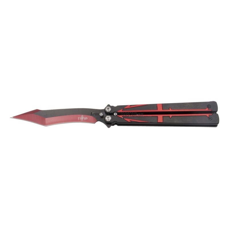 Navaja de abanico Third K2805RDT hoja de acero 420 negra de 12,6 cm con corte anodizado en rojo, mango de acero inox y aluminio rojo con tridente negro. Ref. K2805RDT