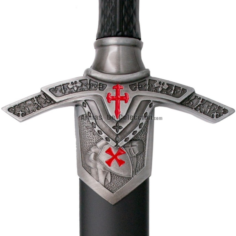 La vaina es de color negro con los detalles metálicos en níquel y detalles lacados en rojo