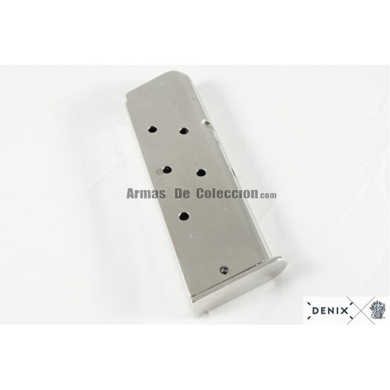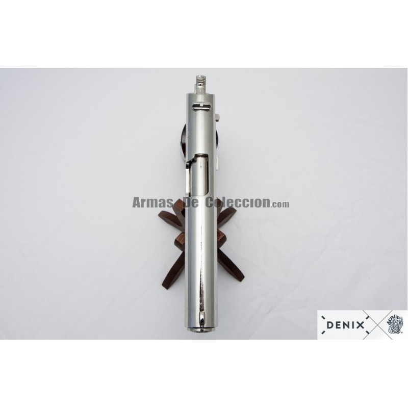 Explora la elegancia y el legado histórico con la réplica Colt M1911A1 .45 Automática Cromada, fabricada por Denix (Referencia 6312). Esta réplica, destaca por su acabado cromado sobre metal y madera lacada, reflejando el prestigio del diseño original. Con medidas de 24 cm y un peso de 950 g, esta pistola fue una pieza clave en ambas Guerras Mundiales. La M1911A1, por su fiabilidad y robustez, fue la elección de las Fuerzas Armadas de EE.UU. durante décadas. Esta versión desmontable cromada no solo es un coleccionable, sino también un homenaje a un ícono de la historia militar.