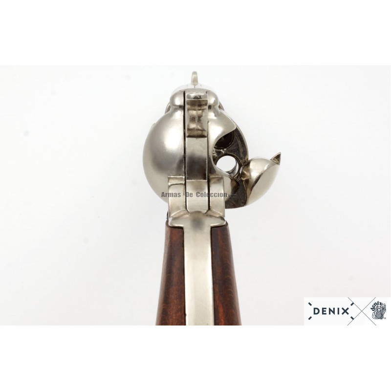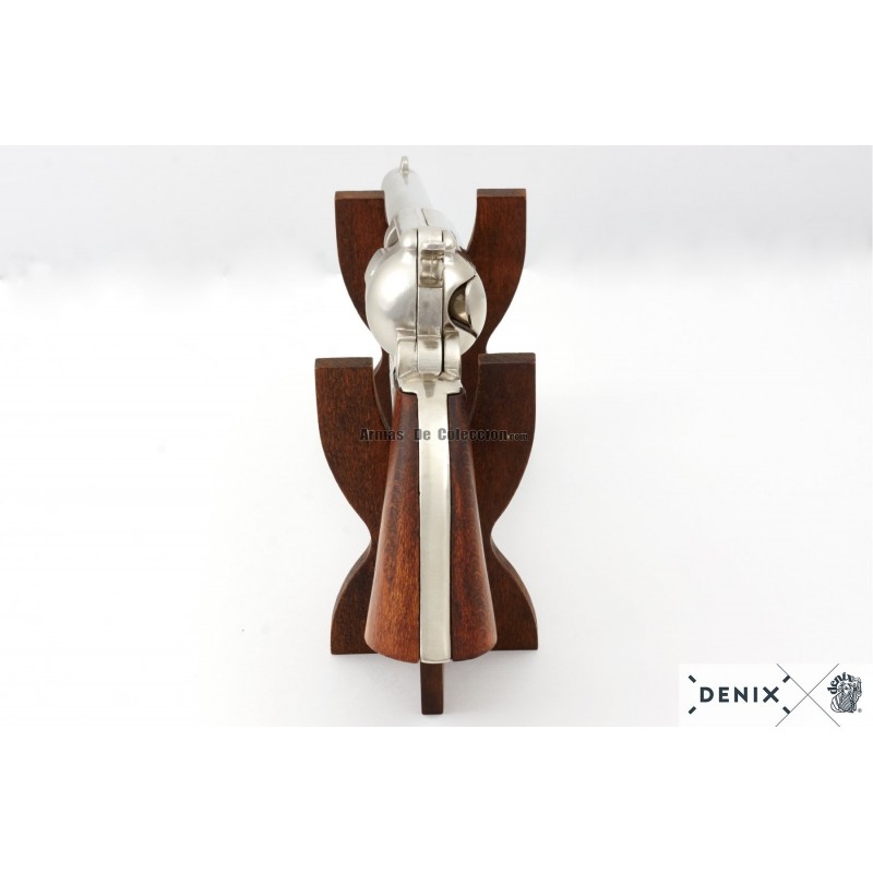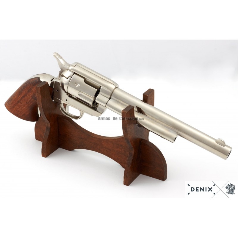 Descubre la réplica del revólver Peacemaker 7½" de Denix, referencia 1107/NQ, un homenaje a la historia del Viejo Oeste. Con medidas de 35 cm y un peso de 1.020 g, esta réplica meticulosamente fabricada en metal y madera ofrece un realismo sorprendente. El Peacemaker original, diseñado por Samuel Colt en 1873, se destacó por su uso en el ejército estadounidense y su popularidad en el Viejo Oeste, gracias a su calibre compatible con el rifle Winchester M1873. Este revólver, también conocido como Single Action Army (SAA), Frontier o Widowmaker, se inmortalizó en los westerns de los años 40 y 50, siendo asociado con figuras legendarias como John Wayne, Gary Cooper, Roosevelt y George S. Patton. La réplica 1107/NQ de Denix captura la esencia de este icónico revólver, ofreciendo una experiencia única para coleccionistas y aficionados a la historia armamentística.