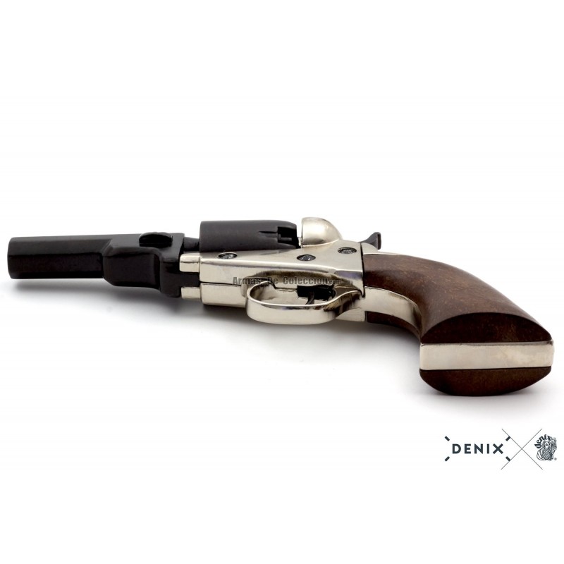 Descubra a réplica do Revólver Wells Fargo, desenhado por S. Colt em 1849, Ref. 1259/NQ da Denix. Com 22 cm de comprimento e peso de 540 g, esta réplica reflete qualidade e detalhe na sua construção em metal e imitação de madeira. Mergulhe na época do Western e da Guerra Civil Americana com esta peça única, ideal para colecionadores e entusiastas da história. Seu design e fabricação relembram uma era icônica, oferecendo uma peça colecionável excepcional e repleta de história.