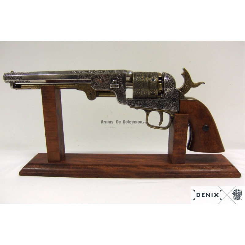 O cilindro deste revólver, gravado com uma cena da Batalha de Campeche, reflete a importância histórica e o detalhe artístico da época . Usuários notáveis do Colt Navy incluíram personalidades como Wild Bill Hickok e Robert E. Lee, reafirmando seu lugar na história americana