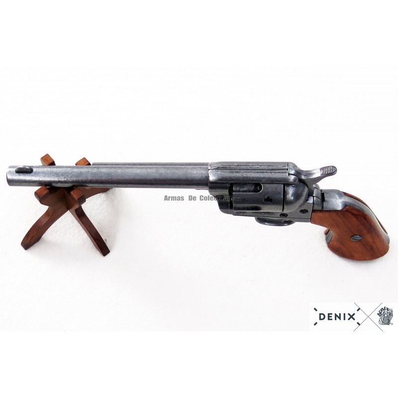 Descubra a grandiosidade da réplica do revólver Peacemaker 7½", uma obra-prima da Denix com referência 1107/G. Este revólver, uma recriação fiel do icônico Peacemaker Cal.45, mede 35 cm e pesa 1.020 g, refletindo a habilidade artesanal em metal e madeira. Sua história remonta a 1873, projetado por Samuel Colt e amplamente utilizado no exército dos EUA e na vida civil. Conhecido também como Single Action Army (SAA), este revólver foi crucial no Velho Oeste, popularizado por sua compatibilidade com munição do rifle Winchester M1873. Além disso, ganhou notoriedade na cultura pop, aparecendo em clássicos westerns e nas mãos de figuras históricas como Roosevelt e George S. Patton. Esta réplica da Denix, que simula o mecanismo de carregamento e disparo, é indispensável para colecionadores e entusiastas da história armamentista.