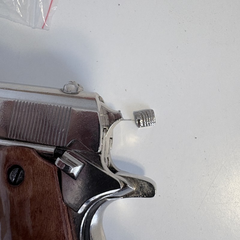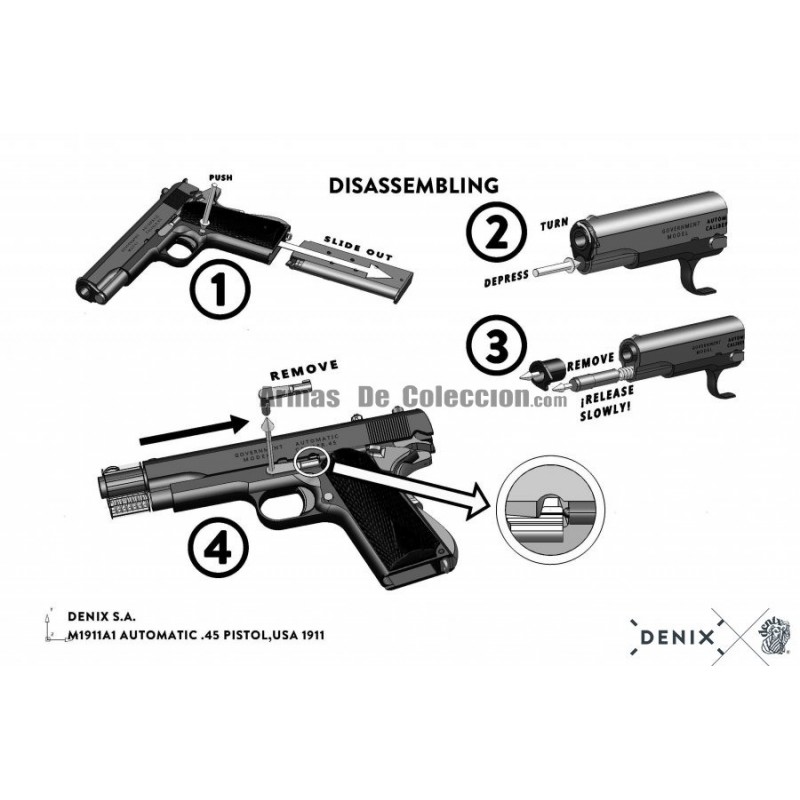 Explore a elegância e o legado histórico com a réplica Colt M1911A1 .45 Automática Cromada da Denix (Referência 6312). Esta réplica, com acabamento cromado em metal e madeira lacada, reflete o prestígio do design original. Com medidas de 24 cm e um peso de 950 g, esta pistola foi uma peça chave nas duas Guerras Mundiais. A M1911A1, conhecida por sua confiabilidade e robustez, foi a escolha das Forças Armadas dos EUA por décadas. Esta versão desmontável cromada não é apenas um colecionável, mas também uma homenagem a um ícone da história militar.