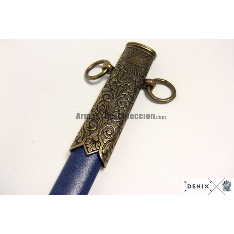 Reprodução de uma espada maçônica dos séculos XVIII XIX. A espada foi dada como recompensa pela posição e mérito e foi usado nas cerimônias dos maçons. É gravada com os elementos dessa ordem.